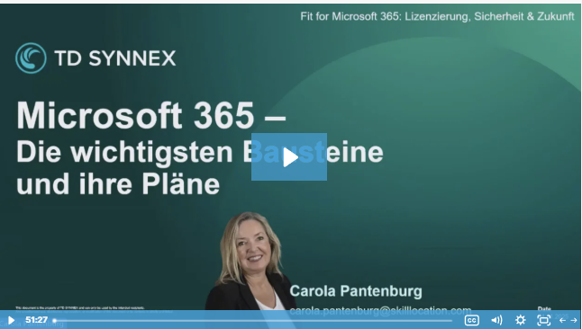 In diesem Webinar erhalten Sie einen fundierten Überblick über die zentralen Komponenten von Microsoft 365 sowie deren Lizenzierung. Gemeinsam mit Carola Pantenburg von Skillocation vermitteln wir Ihnen ein praxisnahes Verständnis, das Sie direkt in der Kundenberatung und im Vertrieb anwenden können.