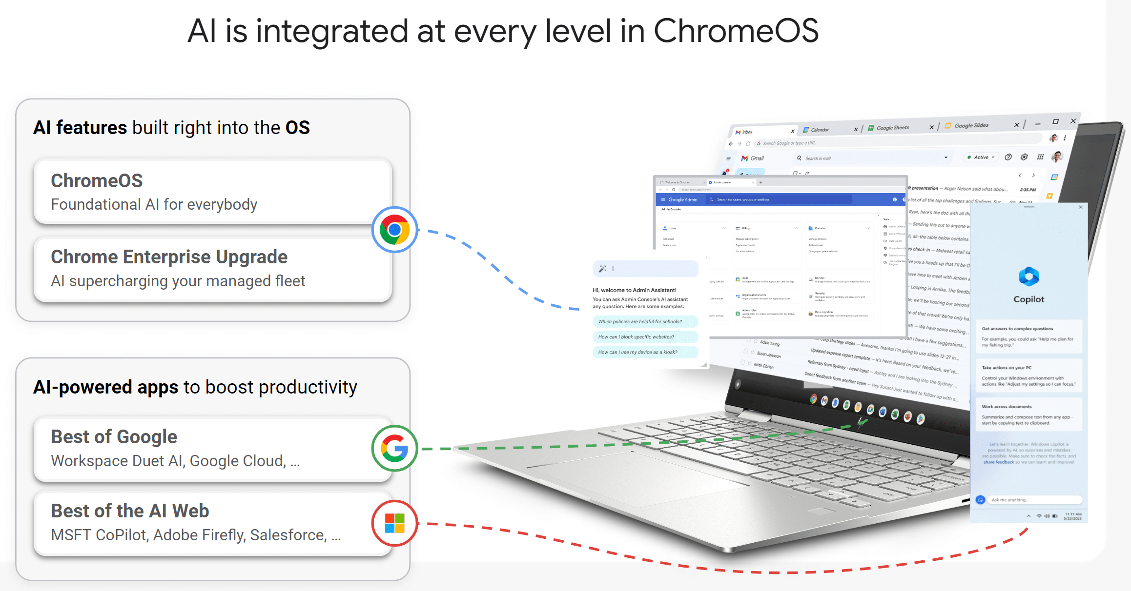 Chromebook Plus-Geräte ermöglichen es deinem Team, mehr zu leisten – mit erstklassiger Sicherheit und einfacher Verwaltung. Entfessele Kreativität, fördere Zusammenarbeit und steigere Produktivität mit der Leistung, Geschwindigkeit, dem Speicher und dem Speicherplatz der Chromebook Plus-Geräte.