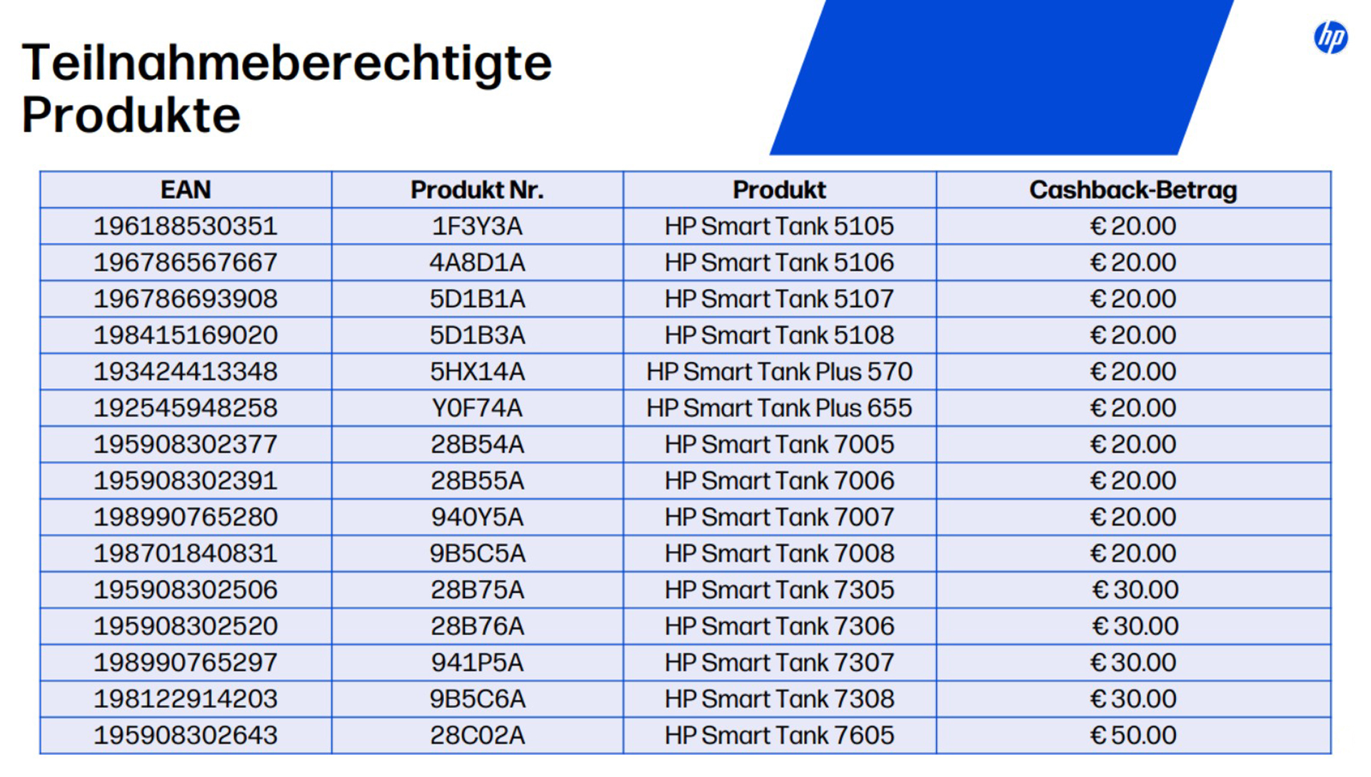 HP Smart Tank: bis zu 50 € Cashback
